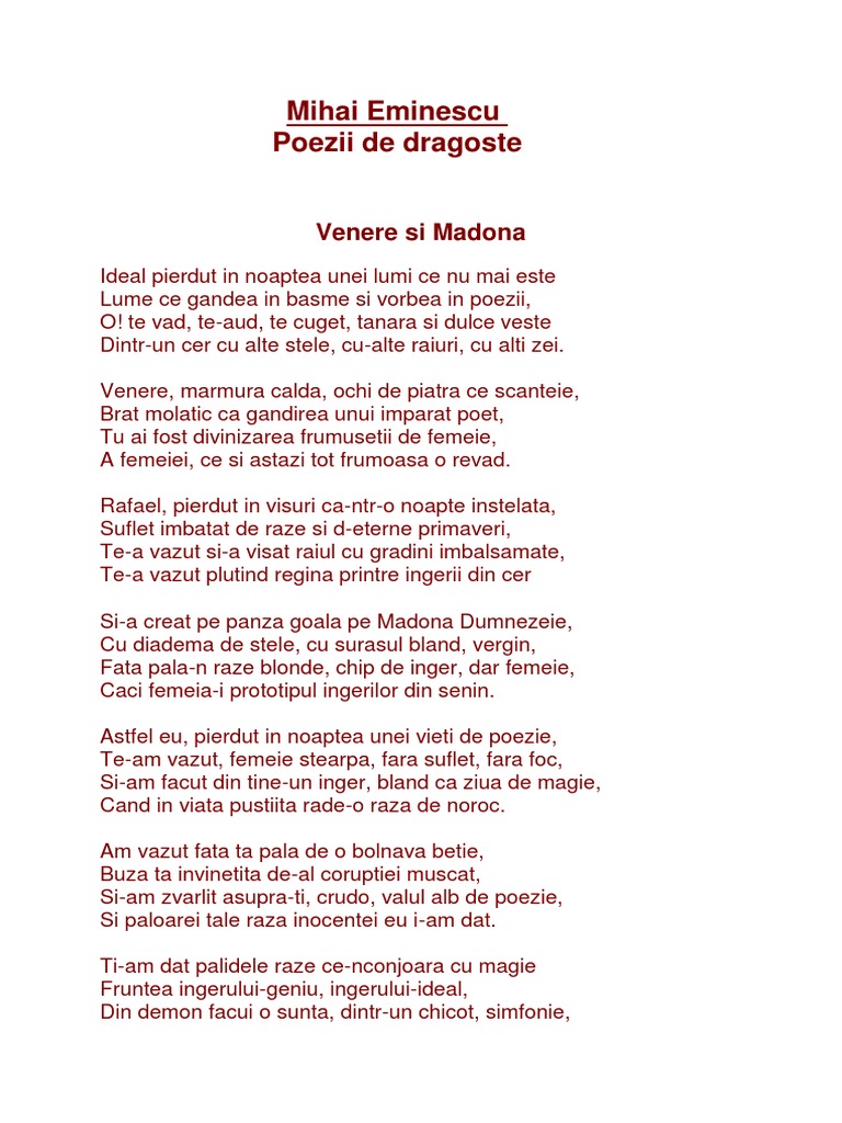 Poezia romantica luceafarul de mihai eminescu. 15 iunie 1889, bucurești) a fost un poet, prozator și jurnalist român, socotit de cititorii români și de critica chipul lui iisus hristos apare evocat în câteva poezii și în articolele publicate în „timpul. Am rugamintea la toate doamnele si domnișoarele care au apreciat asa de mult pagina mea poezii ale lui mihai eminescu,asa am rugamintea să aprecieze si aceasta pagină a mea! Mihai eminescu poezii de dragoste. Autor poezia cine a scris versuri versuri cuvinte cuvintele poeti romani cine a scris versuri mihai eminescu versuri versurile.