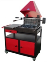 Desserte pour plancha convient pour les planchas 2,3 ou 4 brûleurs finition métal crochets et compartiments de rangement 2 roues et poignée pour un déplacement facile dimensions du plateau :
